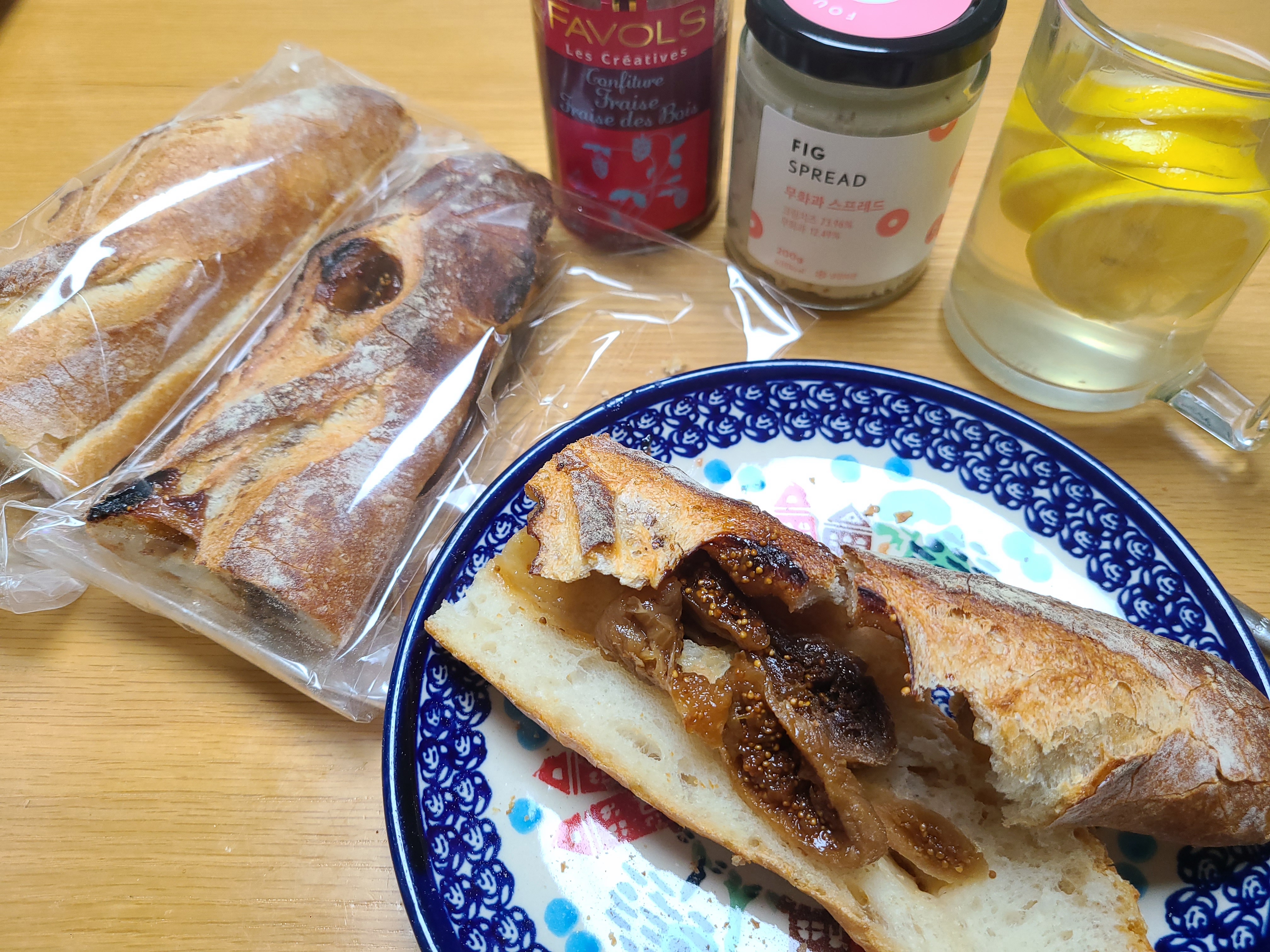 플레인 바게트와 무화과 바게트를 사왔는데,