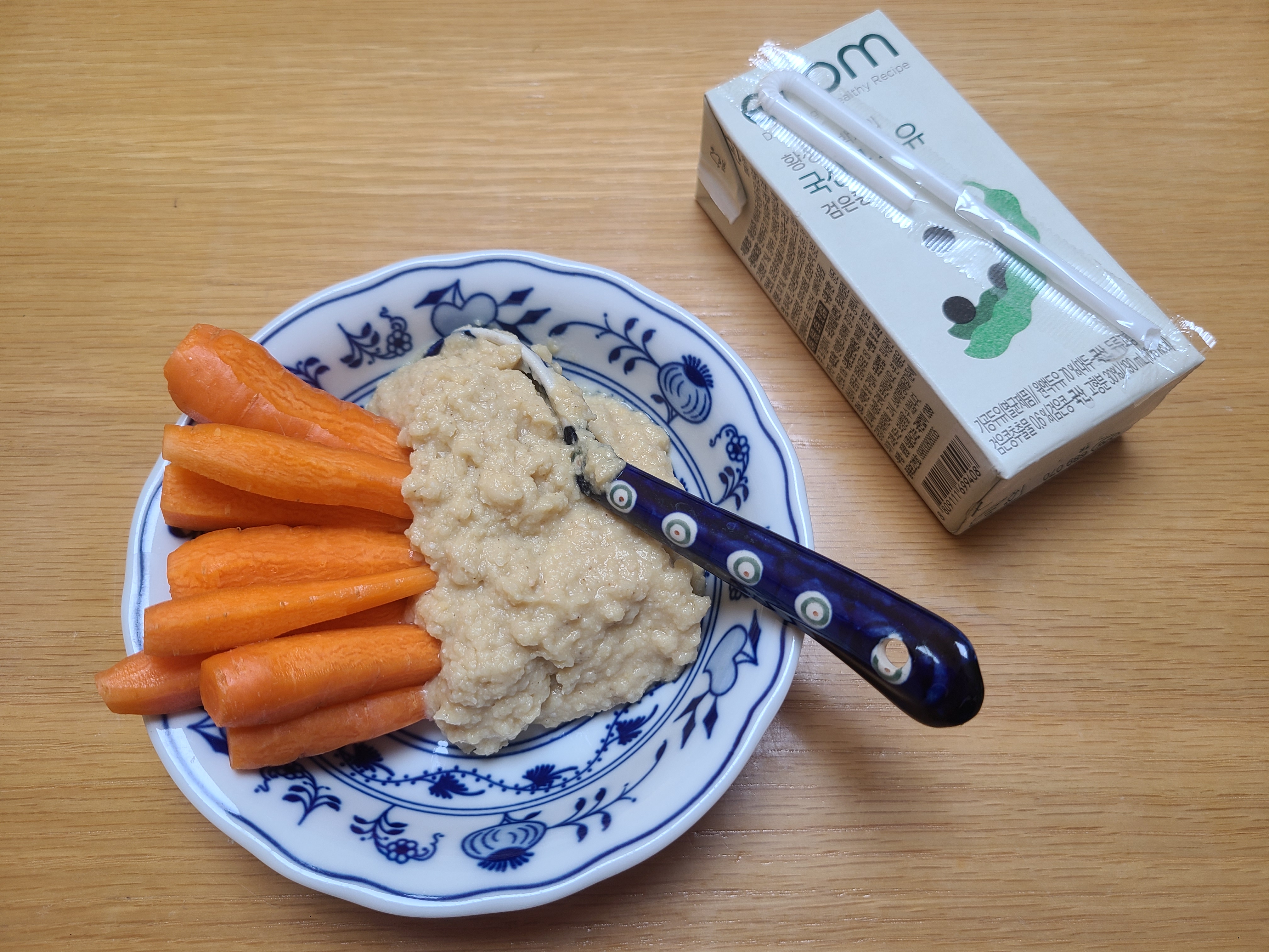 역시 컬리에서 주문한 후무스에 베이비 당근을 찍어먹었다.