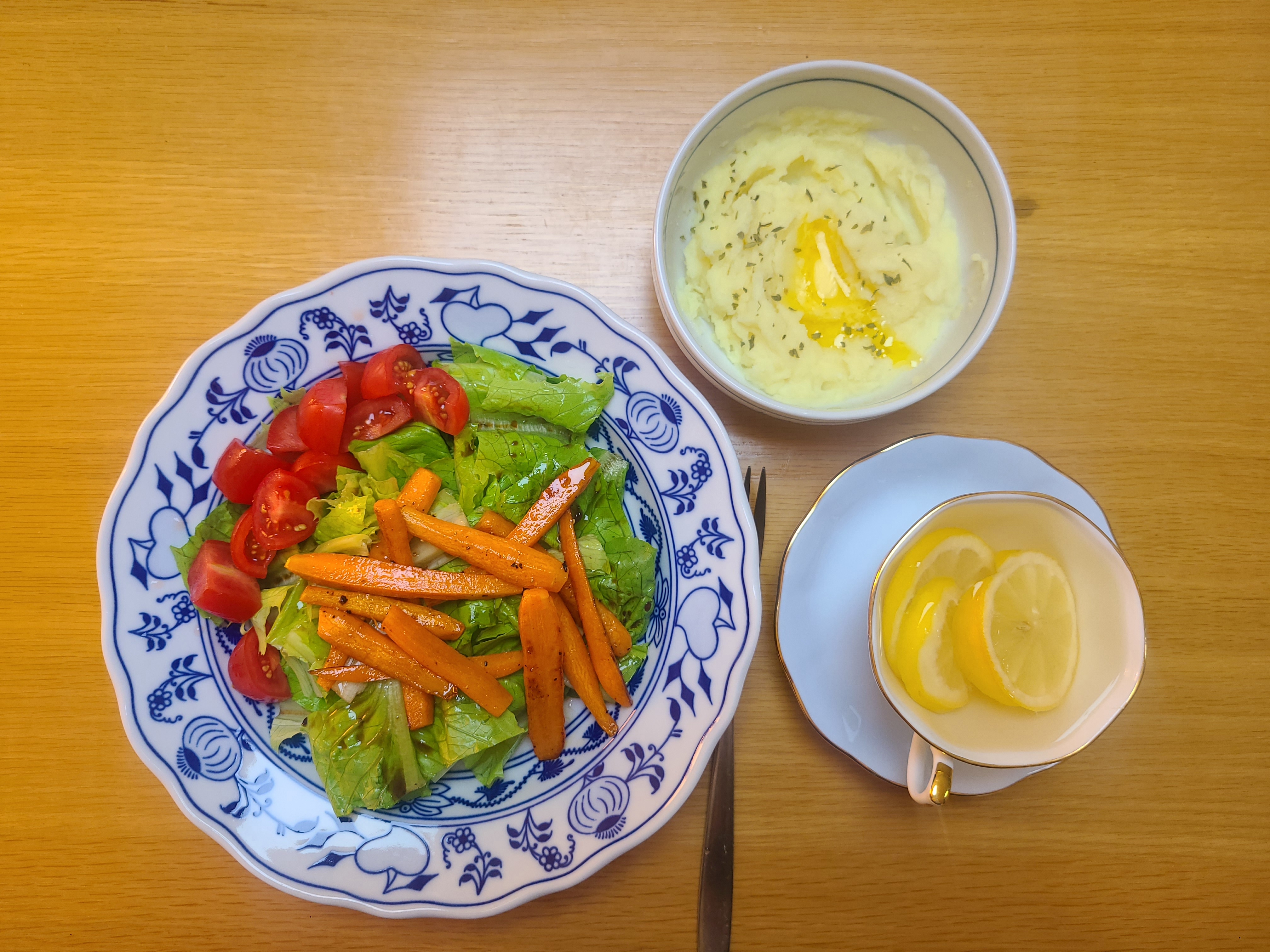 컬리에서 주문한 로메인에 베이비 당근 구워서 얹고 발사믹이랑 트러플 오일 뿌려서 먹었다.