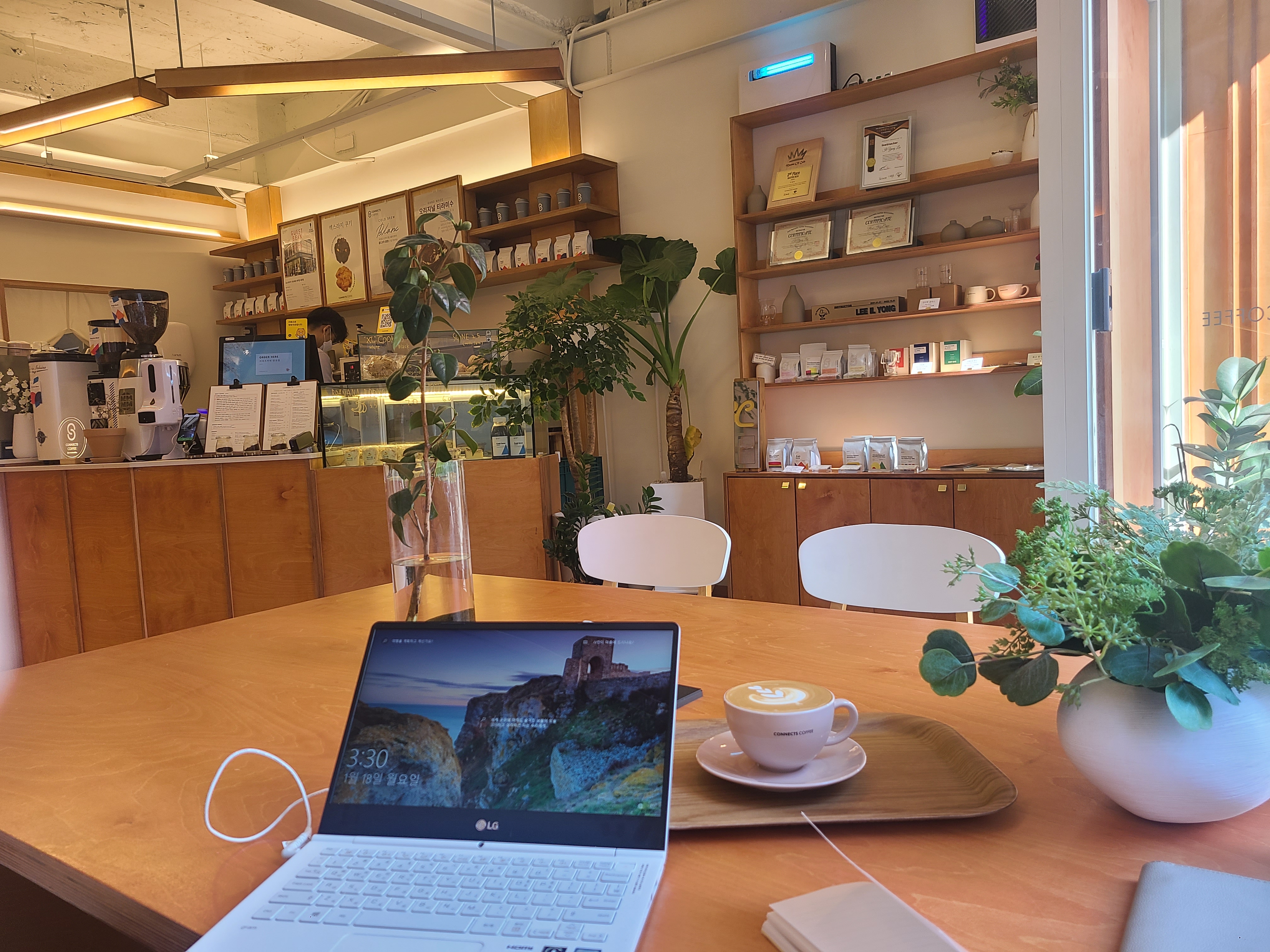 브릭스 베이글 앞에서 5분의 공백도 생각보다 긴 것을 경험했기에 바로 다른 커피숍에 들어갔다.